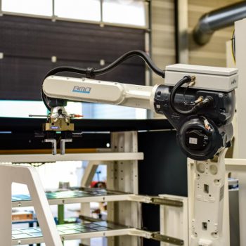 This compact BMO Platinum 20 Frontloader loads the Hermle C400 through the front door of the CNC machine. The safety is guaranteed by the floor scanners. In this combination it was decided to only use product loading on the Hermle C400. This BMO robot cell includes the following specifications: